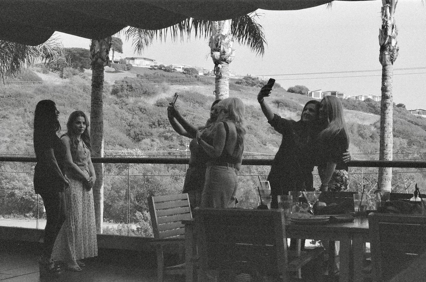 I watched this group of women take selfies for at least 20 minutes. They first started with a much larger group at their table. Then they proceeded to walk up to the edge of the restaurant patio in small groups and pairs to continue their selfie marathon. So many selfies!